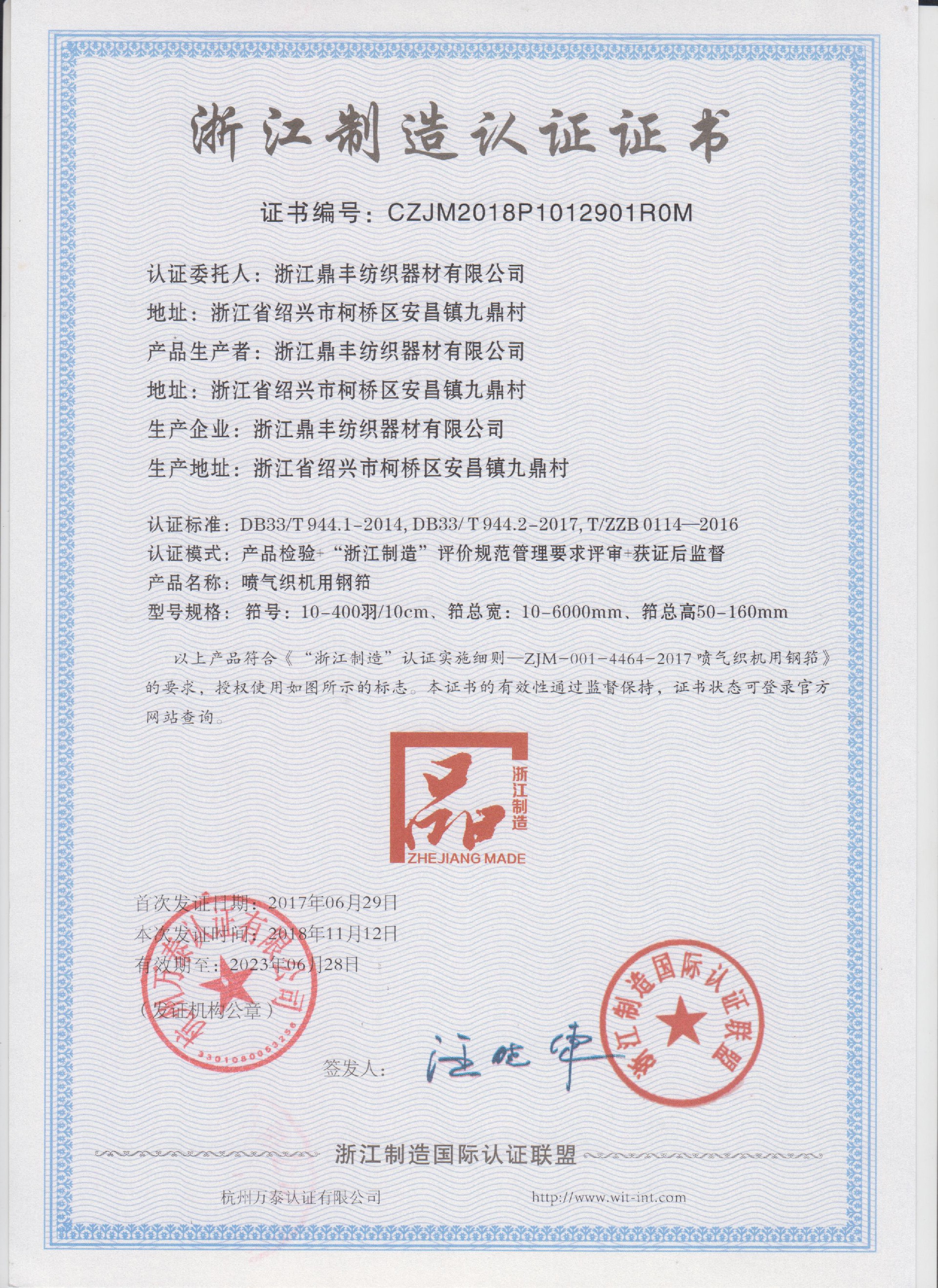 公司現(xiàn)有固定資產(chǎn)6000余萬(wàn)元,員工300余人,現(xiàn)具有年產(chǎn)噴氣異型筘12萬(wàn)米,劍桿筘32萬(wàn)米,噴水筘5萬(wàn)米,綜框20萬(wàn)片,鋼片綜2億片,停經(jīng)片1.5億片, 織軸1.2萬(wàn)套的生產(chǎn)能力。公司“越泉”商標(biāo)被評(píng)為“中國(guó)馳名商標(biāo)”。公司通過(guò)ISO9001 :2015國(guó)際質(zhì)量體系認(rèn)證,ISO14001:2015國(guó)際環(huán)境管理體系認(rèn)證,ISO45001:2018國(guó)際職業(yè)健康安全管理體系認(rèn)證,噴氣織機(jī)用鋼筘和織機(jī)用鋁合金綜框獲得“浙江制造”品牌認(rèn)證,公司擁有自營(yíng)進(jìn)出口權(quán),產(chǎn)品暢銷全國(guó)并遠(yuǎn)銷印度、巴基斯坦、土耳其、埃及、哥倫比亞、意大利等國(guó)家和地區(qū)。